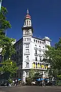Following work on a number of apartment buildings and private residences, Gianotti was commissioned to design the La Inmobiliaria Building (on Avenida de Mayo) in 1910, and Galería Güemes in Florida Street, possibly one of his best works, in 1913; with 14 floors, and a height of 80 m, it was considered to be the first skyscraper in Buenos Aires. Two years later, in 1915, a famous local confectioner, Cayetano Brenna, commissioned him to design the Confitería El Molino. Located on the corner of Callao and Rivadavia Avenues, the building became a well-known landmark in the city. Until 1918 he designed mainly in the Art Nouveau style, but later employed a more orthodox Eclecticism combining Italianate and Moorish revival styles, notably in the Italian-American Navigation Company Building (1927) on 622 Diagonal Norte Avenue. Gianotti also created works of Neoclassical architecture, notably the El Mundo newspaper offices on 647 Diagonal Norte (1925), and the Schaffhausen Building (336 Reconquista St.), in 1932.