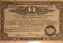 On November 16, 1930, the Puerto Rican Nationalist Party issued bonds in the name of the "Republic of Puerto Rico" bearing the photograph of Dr. Ramírez "First President of the Republic".[9] There's a street in Hato Rey, Puerto Rico called Calle Presidente Ramírez (lit. "President Ramírez Street") in his honor. In addition it makes recognition of Ramírez Medina with a character in the play entitled "El Grito de Lares ... un momento en la historia." This work was written and has been run by the same author, Gerardo Lugo Segarra better known by his stage name as Jerry Segarra. The play was premiered on September 22, 2009 and since then uses the actual scenarios where they developed the Grito de Lares as were the Revolution Square, City Hall, the temple of the Catholic Church and the streets around the Plaza in Lares, Puerto Rico.