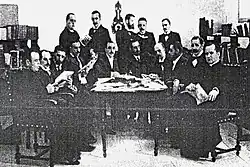 In 1893 Ureña was engaged in launch of El Pueblo Católico, a Jaén-based bi-weekly.[33] According to some sources he was the key man behind the enterprise,[34] according to others it was rather Emilio Mariscal Mendoza, who financed the launch and became the first director.[35] Exact Ureña position in relation to El Pueblo during first decades of its lifetime is in doubt; numerous sources present him as spiritus movens, yet it remains unclear whether he was the owner or the co-owner of the title. Though the periodical bore no sub-title, it boasted of approval by ecclesiastic censorship;[36] in terms of political line it clearly represented Integrism, the most intransigent and extreme current within Spanish Right. From the onset it adhered to ultra-Catholic unyielding standpoint, by historians categorized as "esencialmente dogmático" and marked by "extremismo".[37] Though in 1909 it converted into a daily[38] (according to some sources in 1910),[39] El Pueblo remained "periódico secundario dentro del panorama periodístico"[40] with circulation of some 1,500 copies.[41] Periodically Ureña acted as the director,[42] yet the holders of this role changed frequently.[43] Despite this, the daily remained on the market and in 1917 celebrated its 25th anniversary, proud to "be faithful to the line set in 1893".[44]