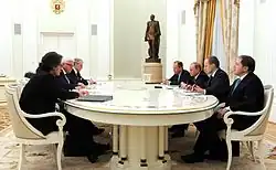 In May 2008, he became the first foreign official to hold talks with President Dmitri Medvedev and Prime Minister Vladimir Putin after they took up their new positions following the 2008 Russian presidential election.[36]
