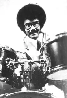 ![]() Jazz drummer Frank Gant in a 1976 DownBeat advertisement | |