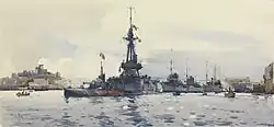 He had lived at Blenheim Terrace in Scarborough but relocated the short distance to lodgings in North Marine Road.[6] During the First World War, Mason was appointed shipping war artist[8] in the RNVR as lieutenant in command of a Motor Launch in the North Sea, and Egypt.[9] The Imperial War Museum holds 56 of his paintings from this period.[10][11] On returning from the war, Mason worked with the community at Ebberston Hall near Scarborough[10] and he travelled abroad extensively undertaking an extended European tour. He painted many subjects generally in water colour. During the 1920s and 1930s he designed poster artwork for Great Northern Railway, Great Western Railway, London, Midland and Scottish Railway, North Eastern Railway, London and North Eastern Railway, British Rail and Underground Group railway companies and ocean liner companies.[3][4][12][13][14]
