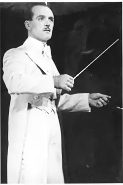 On 7 June 1904 in the mining town of Emmaville, New South Wales, Frank Coughlan was born the third son of William and Elizabeth Coughlan. In 1912, his father took the position of the District and Glen Innes Band Master and taught his five sons to play brass instruments.[1] When Coughlan was nineteen, he moved to Sydney, Australia in New South Wales with his family.[2] While there, Coughlan began a music performance career that lasted forty-nine years. 'Miff' Mole, the American trombonist, inspired Coughlan's musical approach, and he began playing at the local Bondi Casino in Will James's dance band.[1] Coughlan was skilful in dance band music and his career started with Will James's dance band. Two years later, in 1924, he joined a sensational band called the Californians, which allowed him to travel more around Australia. As "the first jazz group to come to Australia," the Californians provided him with "his first experience with dance music and jazz.[2]" It was with this band that Coughlan developed most in skill and style and even made his introduction into the world of arranging. The band also enabled Coughlan to discover and hone the skills which made him the highly sought after musician he grew to be.