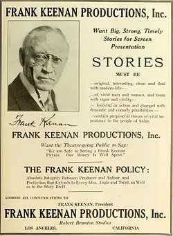Frank Keenan (born James Francis Keenan;[1] April 8, 1858 – February 24, 1929) was an American stage and film actor and stage director and manager during the silent-film era. He was among the first stage actors to star in Hollywood, and he pursued work in film features for a number of years.