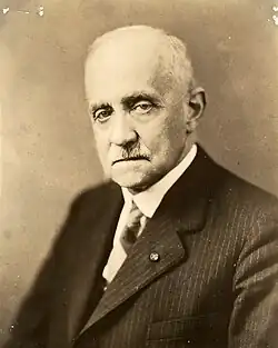He was district attorney for Marin County during 1885 to 1891.[4][5] In 1891, he became judge of the superior court for a term of twelve years.[6][1] He was associate justice of the Supreme Court of California during December 11, 1902, to January 4, 1915, serving in Department One with justices Lucien Shaw and Walter Van Dyke, later replaced by M. C. Sloss.[1] In November 1914, Angellotti ran successfully for chief justice to replace retiring William H. Beatty, and held the post from January 5, 1915, to November 15, 1921.[7][8][9] His notable cases include In re Terui (1921), and In re Kotta (1921), in which he wrote the opinion striking down the alien poll tax adopted in the previous session of the California legislature.[10][11][12]