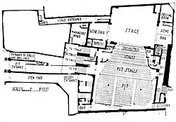 - ^ The building was the first purpose-built, stone and brick theatre in Stockport. It introduced the latest designs in ventilation and featured an updated version of gaslighting. The auditorium had a capacity of 3,000 and featured tip-up seats in the dress circle and upholstered chairs in the boxes. Local building contractors were used at a cost of £12,000, a fee paid personally by Revill. The theatre was demolished in 1962.[33]