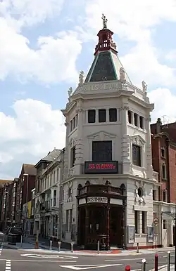 Purcell took over the family business in 1899 after the death of four of its members but only commissioned a few buildings over the next decade, including the Alexandra Theatre, Stoke Newington.[44] Matcham continued to work with Purcell until around 1908 when the latter decided to wind up the business.[45] Matcham's last design for the family, according to the historian Michael Sell, was the Kings Theatre, Southsea, in 1907.[46] The architecture historian Nikolaus Pevsner called the Kings Theatre "splendid" and described the theatre as having a "prominent hexagonal tower with Ionic columns and lion finials around a broad spire-like top crowned by a cupola with a replica statue of Aurora. The interior is charming and richly detailed, making full use of the tight space. Plaster figures and mouldings in Matcham's full-blown Baroque."[47]