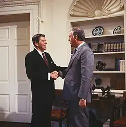 He was first elected to the U.S. Senate in 1980, defeating Democratic candidate Clark Gruening, with the help of Ronald Reagan's popularity. He won with 54% of the vote.[6] He was re-elected in 1986, 1992, and 1998. During his time in the Senate, he was most notable as Chairman of the Energy and Natural Resources Committee from 1995 to 2001. As chair, he argued and attempted unsuccessfully to open the Arctic National Wildlife Refuge to oil drilling.