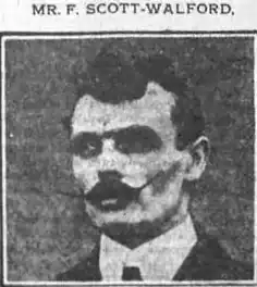 Frank Scott-Walford was known as something of a dandy and sported a flamboyant waxed moustache. He was also known for varied headgear appearing at different times in a straw boater, a bowler hat or a cap. He also wore plus fours and was known for his buttonholes.