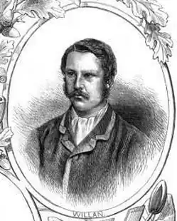 Willan went up to Oxford as a member of Exeter College.[2] There, he rowed for Oxford in its winning Boat Race crews in four successive years, in 1866, 1867, 1868 and 1869.[7] In 1867 he was also in the winning Oxford Etonian crew in the Grand Challenge Cup at Henley Royal Regatta[8] and runner up in the Diamond Challenge Sculls.[9] In the same year, 1867, he gave evidence in a legal dispute over the starting of a sculls race on the Thames.[10] In 1869, he was President of the Oxford University Boat Club.[10][11]