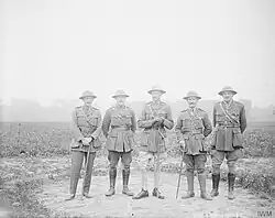 ![]() Ramsay (center) with officers in 1917 | |