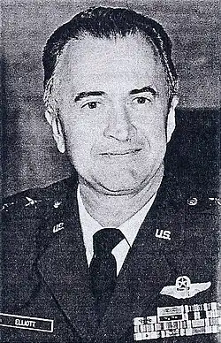 Frank Worth Elliott Jr. (December 2, 1924 – October 20, 1997)[1] was a major general in the United States Air Force. General Elliott served in World War II as the captain of a B-24 Liberator, commander of the 14th Strategic Aerospace Division, and commander of Chanute Air Force Base[2] in Rantoul, Illinois. Elliott also held the distinction of having piloted the SR-71 Blackbird.[3]