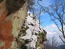 Today, all that remains of the Frankenburg are a few wall remnants and manmade traces on the rock.[1][2] The rocky outcrop on the Frankenberg lies at a height of 545 metres above sea level.[3]