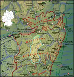 - ^ a b Landesamt für Vermessung und Geobasisinformation Rheinland-Pfalz, ed. (1999), Topografische Karten 1:25.000 mit Wanderwegen, Hauenstein und Umgebung (in German), Koblenz: Eigenverlag des Landesamtes für Vermessung und Geobasisinformation Rheinland-Pfalz