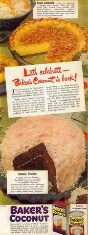 Franklin Baker Company is a manufacturer and exporter of desiccated and processed coconut products in the U.S. and internationally, established in 1897. The company manufactures the retail coconut brand Baker's Coconut.[1]