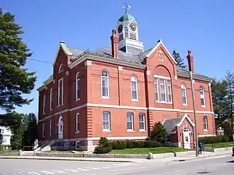 The Franklin County Courthouse is a courthouse located in Farmington, Maine, the county seat of Franklin County. The 1885 courthouse represents a sophisticated design by George M. Coombs, with an addition in 1917 by Coombs' son, Harry Coombs. The building, the county's first purpose-built courthouse, was listed on the National Register of Historic Places in 1983.[1]