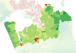 Franklin ward covers 1,199.39 km2 (463.09 sq mi)[1] and had an estimated population of 89,500 as of June 2024,[2] with a population density of 75 people per km2.
