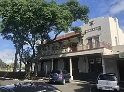 Frankton Hotel remains on the corner of Commerce and High Streets. It was built in 1929 as a 35-room hotel[17] to a design by Jack Chitty[18] and is listed as a category 2 historic place.[19] An earlier hotel was moved about 75 ft (23 m) by horses to make way for the current building.[20] During the move, the bar was in a temporary shed.[21]