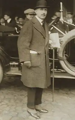 On 3 May 1905, he married Martha von Boch-Galhau (1880–1961), the daughter of René von Boch-Galhau, a wealthy Saarland industrialist and member of the Villeroy & Boch dynasty of ceramics manufacturers; her dowry made him a very rich man.[3] An excellent horseman and a man of much charm, Papen cut a dashing figure and during this time, befriended Kurt von Schleicher.[3] Fluent in both French and English, he travelled widely all over Europe, the Middle East and North America.[3] He was devoted to Kaiser Wilhelm II.[4] Influenced by the books of General Friedrich von Bernhardi, Papen was a militarist throughout his life.[4]