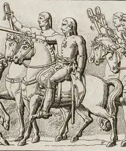 Werneck was present at Aldenhoven on 1 March 1793[1] where Henri Christian Michel de Stengel's column was defeated by two Austrian cavalry regiments.[6] He fought in the Battle of Neerwinden on 18 March. He served at the successful Siege of Valenciennes from 25 May to 27 July and at the failed Siege of Dunkirk from 24 August to 8 September. He led a brigade in József Alvinczi's Reserve at the Battle of Le Cateau on 29 March 1794.[1] At the Battle of Tourcoing on 17–18 May 1794, Werneck led a brigade in Column No. 2 under Rudolf Ritter von Otto.[7] On the first day, only the columns of the Duke of York and Otto reached their targets.[8] The French counterattack on the second day mauled both columns and forced them to retreat.[9]