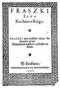 ![]() Title page of Fraszki by Jan Kochanowski, 1590 edition | |