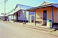 Concrete footpaths and street gutters were laid by Freckleton during the early 1950s. Concrete retaining walls were erected around the early flagstone footpath outside the general store at this time. During the early 1950s Freckleton was involved in the purchase, dismantling and re-sale of ex army building materials and erected timber storage racks between the general store and gallon licence. Also during this period he erected a large iron shed at the rear of the allotment for bulk storage of liquor produce and fuel.[1]