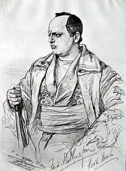 In 1885, Billington added to his list of roles the Learned Judge in Trial by Jury and Pooh-Bah in The Mikado.[15] In August of that year, he travelled to New York for the American production of The Mikado, in a cast that included George Thorne (Ko-Ko), Geraldine Ulmar (Yum-Yum) and Courtice Pounds (Nanki-Poo). Returning from America in May 1886,[15] he performed the roles of Corcoran and Pooh-Bah in the provinces and then Germany and Austria.[16] He then returned to England in 1887 to rehearse the new Gilbert and Sullivan opera, Ruddygore, gave two matinee performances as Sir Despard Murgatroyd at the Savoy Theatre, and then sailed for New York again, to play Sir Despard in the American cast.[17] This was followed by British and European tours of Ruddigore, The Mikado and Patience, in which he played Colonel Calverley.[1] He also filled in for Rutland Barrington as Sir Despard briefly at the Savoy.[18]