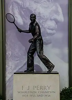 Despite his unprecedented contribution to British tennis, Perry was not accorded full recognition by tennis authorities until later in life, because between 1927 and 1967 the International Lawn Tennis Federation ignored amateur champions who later turned professional.[5][7] In 1984, a statue of Perry was unveiled at Wimbledon, and in the same year he became the only tennis player listed in a survey of 2,000 Britons to find the "Best of the Best" British sportsmen of the 20th century.[7]