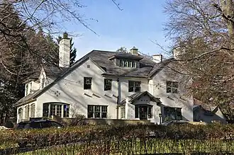 The Fred R. Hayward House is a historic house at 1547 Centre Street in Newton, Massachusetts. This large 2+1⁄2-story stucco-clad house was designed by Winchester architect Robert Coit, and built in 1912. Mostly rectangular in its massing with a hip roof, there are two forward-facing gables framing the main entry, the right one projecting slightly. The roof of the left side gable sweeps down to shelter a sunroom. Fred R. Hayward was later the president of the New England Confectionery Company, which had been created by his father in a sequence of mergers.[2]