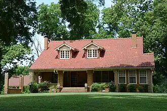 The Alexander-Schaer House is a historic house at 13219 United States Route 70, a short way east of Galloway, Arkansas. It is a two-story frame structure, with a gabled tile roof and brick veneer exterior. Built in 1920, it is a fine example of Mission/Spanish Revival architecture, with the tile roof, brick exterior, and decorative ironwork elements all hallmarks of the style. The house is shaded by ancient oaks and a pecan grove overlooking the cypress waters of Hill Lake. The house's design has been attributed to both John Parks Almand (who did work for Lucy Alexander Schaer's family) or Charles L. Thompson, who did work for other members of the Schaer family.[2]