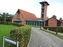 Fredens Church (Danish: Fredenskirken, Peace Church) is a church in Aarhus, Denmark. The church is located in the district of Viby, 3 km south of Aarhus city centre. It is a parish church within the Church of Denmark, servicing a parish population of 7.145 (2015).[1][2] Fredens Church was built between 1958 and 1960 from designs by architects F. Niclasen and Aksel Skov when Fredens Parish was created from northern areas of Viby Parish in 1960. The church features the church room, a chapel and community facilities which encloses a courtyard.[3] The name of the church and parish means "The peace" and refers both to hope for peace following the Second World War and the Fredensvang neighbourhood the church is situated in.[4]