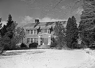 The Frederic Remington House is a historic house at 36 Oak Knoll Road in Ridgefield, Connecticut. A National Historic Landmark, it was the home of the painter and sculptor Frederic Remington (1861–1909) in the last few months of his life. Remington and his wife Eva designed the two-story gambrel-roofed, fieldstone-and-shingle house.[2] He produced some of his finest work in the house including the sculpture The Stampede and the painting The Love Call.[3] The house was declared a National Historic Landmark in 1965.[2]