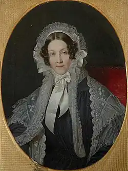 Frederica of Mecklenburg-Strelitz (German: Friederike Luise Caroline Sophie Alexandrine; 3 March 1778 – 29 June 1841) was Queen of Hanover from 20 June 1837 until her death in 1841 as the wife of King Ernest Augustus. She was a German princess who married successively Prince Louis Charles of Prussia, Prince Frederick William of Solms-Braunfels, and her first cousin Ernest Augustus. Through her 1815 marriage to Ernest, then Duke of Cumberland, Frederica became a British princess and Duchess of Cumberland. Ernest was the fifth son and eighth child of Queen Charlotte and King George III of the United Kingdom, Frederica's paternal aunt and her husband.