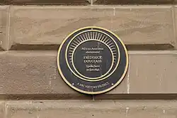 Douglass spent time in Scotland and was appointed "Scotland's Antislavery agent".[97] He made anti-slavery speeches and wrote letters back to the US. He considered the city of Edinburgh to be elegant, grand and very welcoming. Maps of the places in the city that were important to his stay are held by the National Library of Scotland.[98][99] A plaque and a mural at 33 Gilmore Place in Edinburgh mark his stay there in 1846.