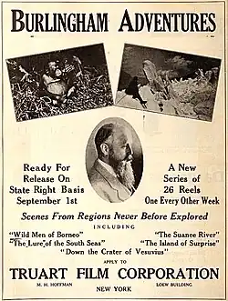 15. ^ "Burlingham Adventures", advertisement, Motion Picture News (New York, N.Y.), August 27, 1921, p. 1018. Internet Archive. Retrieved May 9, 2020.