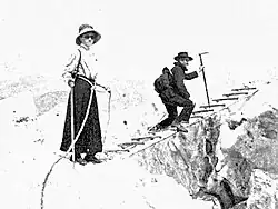 Burlingham's wife Léontine and their guide during ascent of Mont Blanc, 1913
