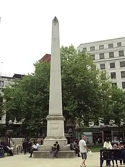 A tall Portland stone obelisk in the churchyard of St Philip's Cathedral, Birmingham commemorates his life. Besides Burnaby's bust, in relief, it carries only the word "Burnaby", and the dated place names "Khiva 1875" and "Abu Klea 1885". The obelisk was unveiled by Lord Charles Beresford on 13 November 1885.[15]