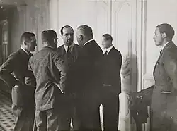 Leith-Ross was appointed as a Private Secretary to H. H. Asquith, the prime minister, in 1911.[5] Between 1932 and 1945 he was chief economic advisor to the UK government: he is known for advancing the economic theory of "Treasury View", popular in the 1930s. Leith-Ross was active in negotiations with Germany prior to the Second World War, such as the Anglo-German Payments Agreement, but is best remembered for the "Leith-Ross mission" to China in 1935, when he was the UK's chief representative in a mission to persuade China to reform its currency.[6][7] He was also chairman of a bank in China and chairman of P&O.