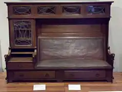 Between 1898 and 1902 Meyer held the post of Supervisor of Art for the public schools in Stockton, California. In 1900, he hired as assistant art supervisor William S. Rice, whom he had met in Pennsylvania; Rice was promoted to Meyer's job in 1902.[4] Meyer and his wife relocated to Berkeley, California, in fall of 1902, where he was hired as an “Instructor of Descriptive Geometry” (i.e. mechanical drawing) at the University of California. A year later was appointed Professor of Applied Arts and head of the Department of Industrial Design at San Francisco's Mark Hopkins Institute of Art, which was administered by U.C. Berkeley.[3] In addition, he opened the Craftsman's Shop in San Francisco and designed custom furniture for prestigious clients, including the: Phoebe Hearst estate at Wyntoon (in association with Bernard Maybeck), California Building at the 1904 Louisiana Purchase Exposition in St. Louis, Faculty Club at U.C. Berkeley, and Sequoia Club in San Francisco.[3]