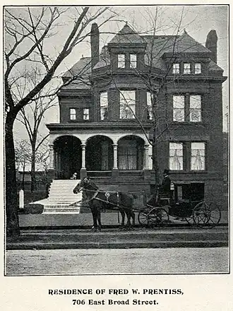 - ^ a b Cynthia Hunt/Kathy Mast Kane (September 1981). "Ohio Historic Inventory: Frederick Prentiss House". National Park Service. Retrieved January 11, 2021. (Included within East Broad Street Multiple Resource Area nomination, reference number 64000619).