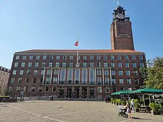 A new plaza in front of the town hall was established in connection with its inauguration.