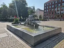 In 1960, a small fountain, designed by Anker Hoffmann, was constructed in the square. It depicts two young people sitting back to back.