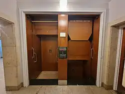 Notably, the Frederiksberg Town Hall also has a Paternoster elevator within it. That type of passenger lift has been stopped from production since the 1970s, and has seen scarce use due to concerns about passenger safety due to its continuous mode of operation. As a consequence, the Paternoster lift in the building is reserved for personnel of the Town Hall itself.