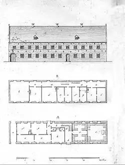 The school was destroyed in a fire in 1834 but a new building was inaugurated in 1836. The new building was built to design by Jørgen Hansen Koch.[1]