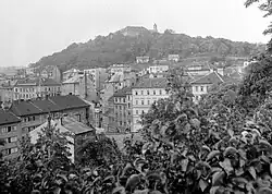 Over time, the Germans applied more and more restrictions to Czech Jews; they were fired from their jobs, forced to move, had property confiscated, were forbidden from certain shops and streets, and eventually forced to wear the Star of David.[18] After the Nazis banned Jews from public spaces, Hirsch organized a playground at Hagibor, in the Strašnice district of Prague, for Jewish children to exercise. Hirsch and Mautner held soccer matches, athletic competitions, study groups, and theatrical performances there.[9][14][19] Although there were other carers, Hirsch's charisma made him the natural leader. Since he could not speak Czech well, he gave instructions in Hebrew and taught the children to speak that language. Survivors reported that Czech songs were written about him.[20] In late 1941, the Nazis began deporting Czech Jews, first to the Łódź Ghetto. Hirsch helped prepare the deportees with the 50 kilograms (110 lb) of luggage they were allowed to bring.[21]
