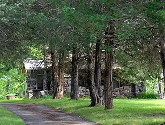 The Freeborn T. Lasater House is a historic house at 494 Arkansas Highway 197 in New Blaine, Arkansas. It is a single-story masonry structure, built out of uncoursed fieldstone, with petrified wood and Native American stone tools, discovered on the property, embedded at various points. It was built over a six-year period by Freeborn Lasater and his family, beginning in 1928, and is the small communities best example of Craftsman architecture.[2]