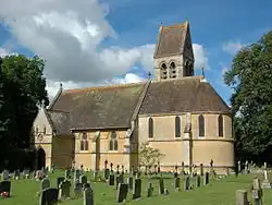 The Wesleyan chapel was completed in 1807.[9] It is now Freeland Methodist Church. The Gothic Revival architect John Loughborough Pearson designed the Church of England parish church of Saint Mary the Virgin, parsonage and parish school.[2] [7] The Taunton family paid for the church and parsonage to be built in 1869 and the school in 1871.[2] The church is high Victorian Gothic Revival, with stained glass and decoration by Clayton and Bell and 13th-century-style paintings of Jesus' Passion and Transfiguration.[7]