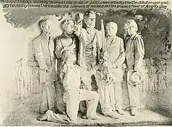 ![]() Niagara Movement leaders W. E. B. Du Bois (seated), and (left to right) J. R. Clifford (who organized the 2nd meeting), Lafayette M. Hershaw, and F. H. M. Murray at Harpers Ferry. | |