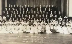 Another of the choir's early successes was its February 1926 performance of Schaefer's Tsvey brider ("Two brothers", based on a work by I. L. Peretz) to an audience of 4000 at the Mecca Temple.[8][13] Schaefer followed it with another successful oratorio, Di tsvelf (The twelve) which was performed at Carnegie Hall in April 1927.[8] The main choir often performed jointly with its affiliated choirs; its fifth jubilee concert at Carnegie Hall in April 1928 was staged together with a branch from Paterson, New Jersey which Schaefer also directed.[8][14]