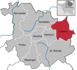 Freisen is a municipality in the district of Sankt Wendel, in Saarland, Germany. It is situated approximately 12 km northeast of Sankt Wendel, and 20 km southwest of Idar-Oberstein. The public transportation in Freisen/Oberkirchen is through bus and connects to other towns via transfers in Sankt Wendel and Neunkirchen.